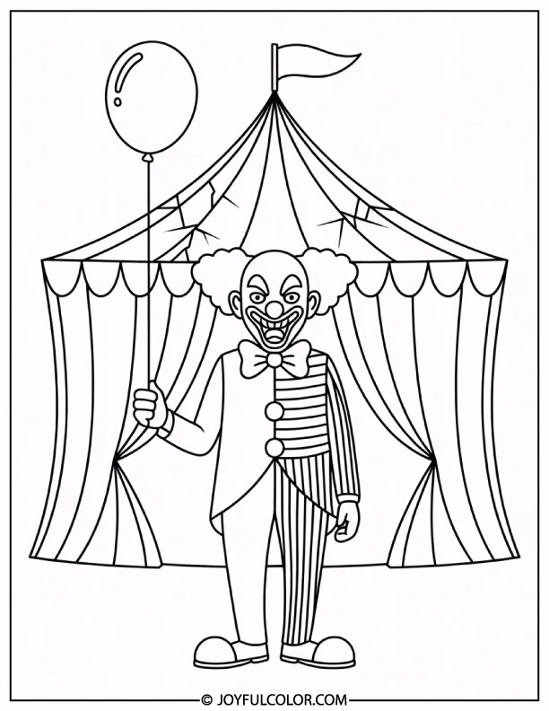 Creepy Clown in an Abandoned Circus Coloring Page
